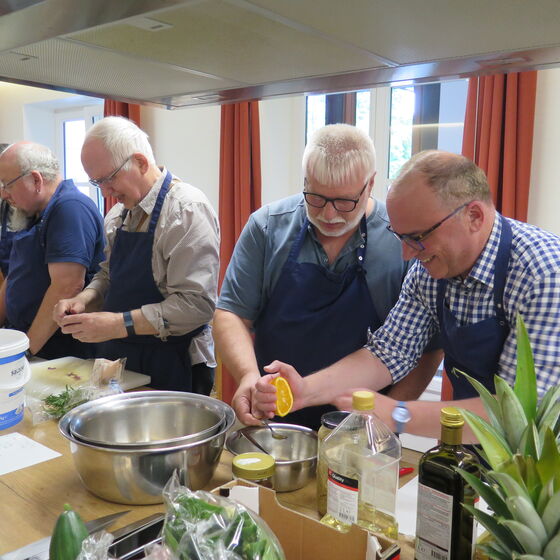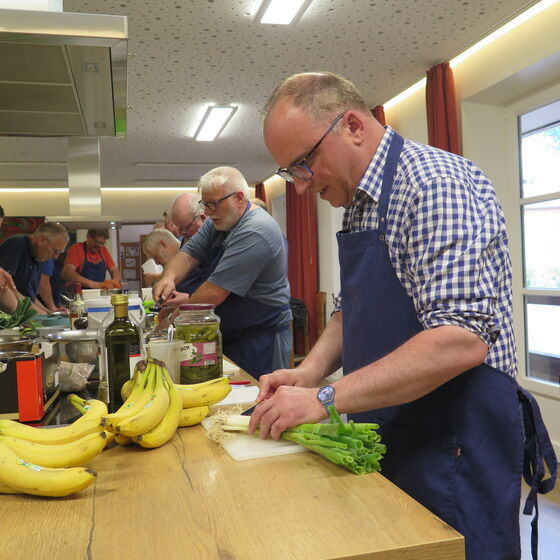 Beim Essen kommt die Runde auf das Kernthema zu sprechen: Reicht manchmal weniger? Bernhard findet dazu klare Worte: „Wenn ich auf die zweite Portion verzichte, geht es mir besser: Ich genieße mehr, fühle mich wohler und starte frischer in den nächsten Tag. Unsere Gesellschaft leidet unter dem ‚Immer mehr, immer verfügbar‘-Prinzip. Wir müssen wieder lernen, Maß zu halten.“ Ein anderer Teilnehmer fasst den Reiz des Männerkochens so zusammen: „Schöne Atmosphäre, macht Spaß und schmeckt.“