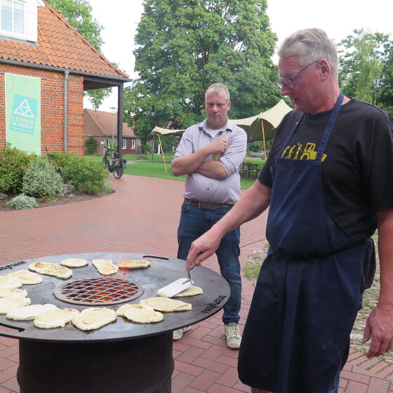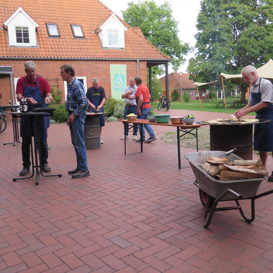 Bereits zum vierten Mal in diesem Jahr fand das beliebte Format „After Work Cooking“ für Männer in der HeideLandGenussKüche des Evangelischen Bildungszentrums in Hermannsburg (EBH) statt – diesmal jedoch in einer ganz besonderen Ausgabe: Rustikal, gesellig und mit regionalem Schwerpunkt wurde am offenen Feuer gekocht.