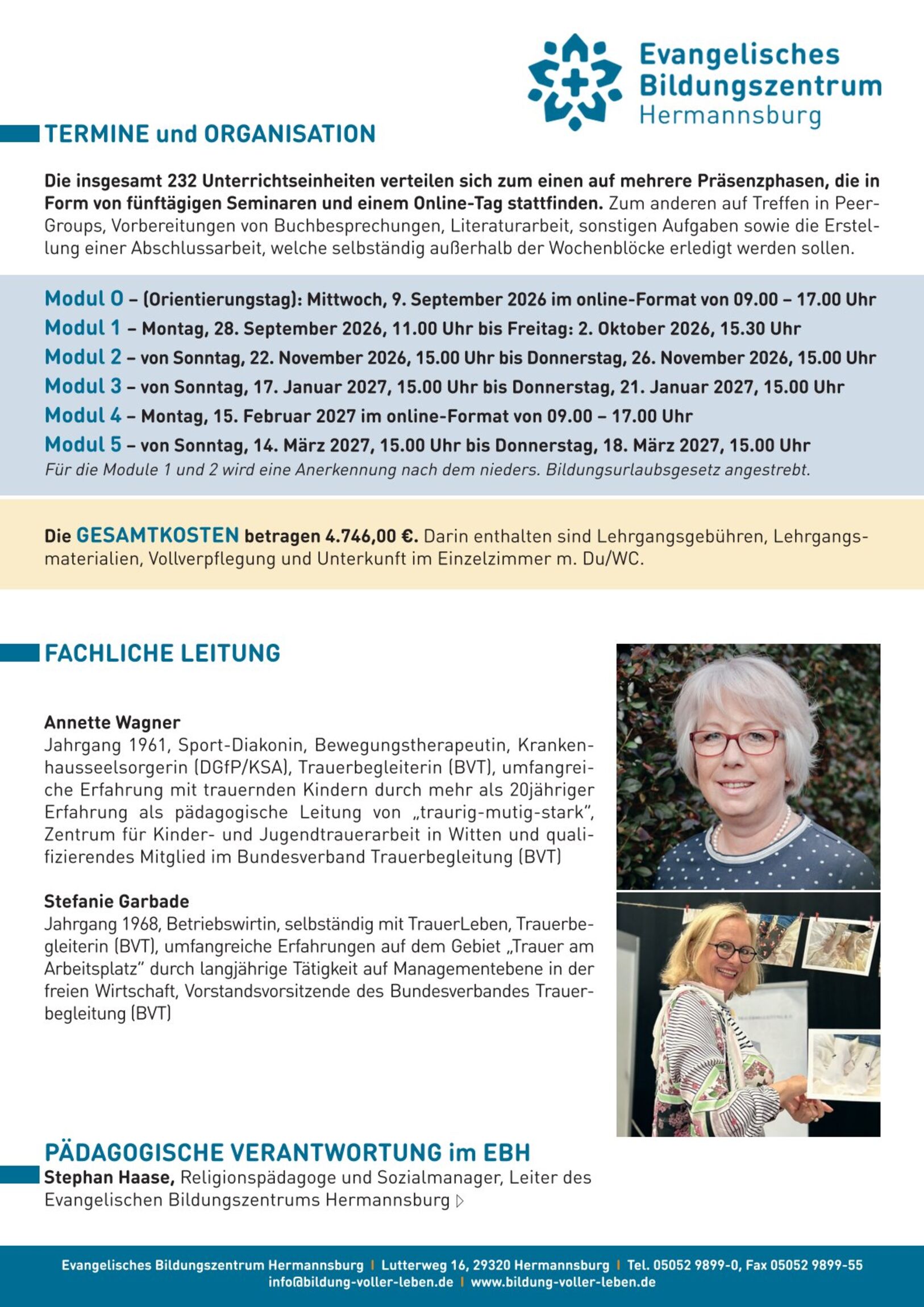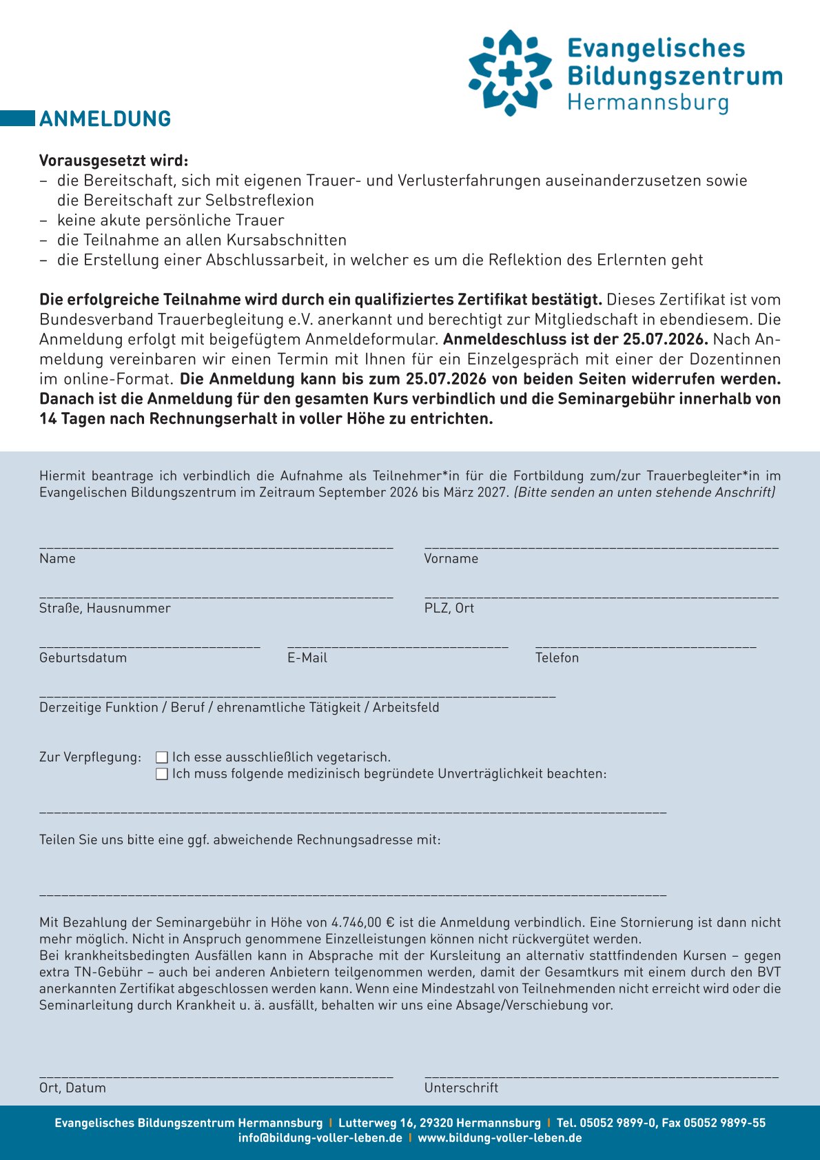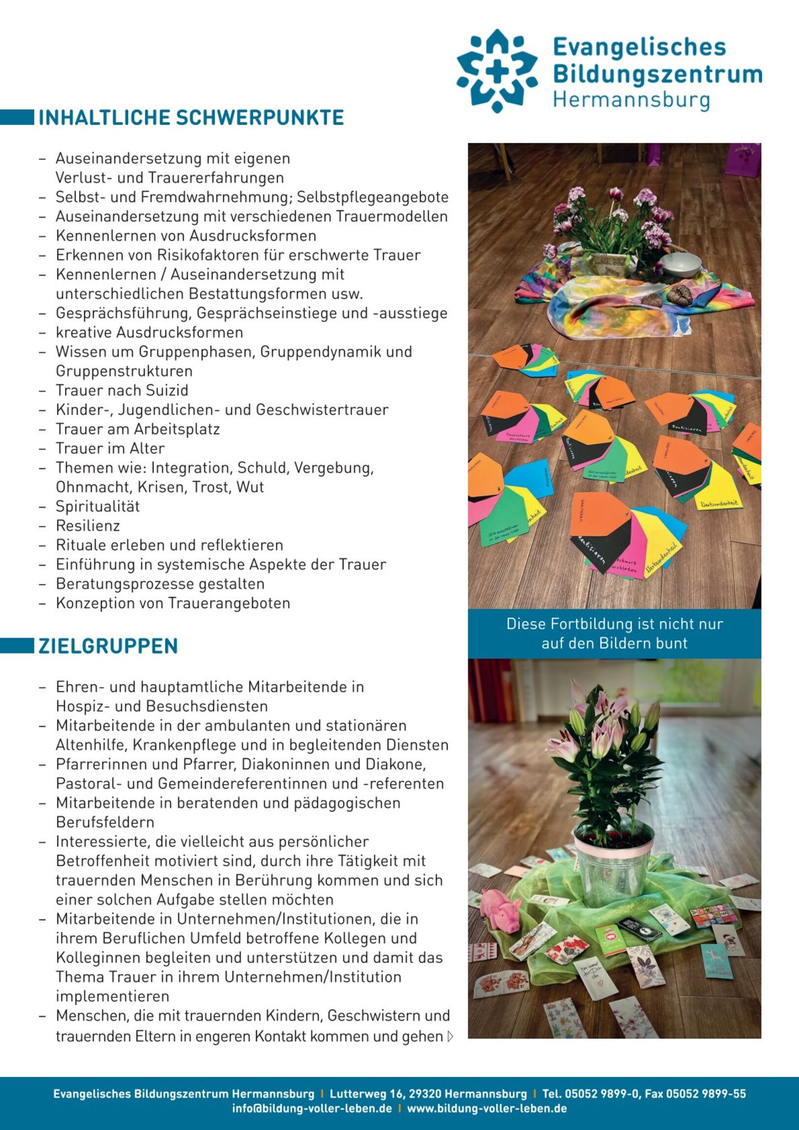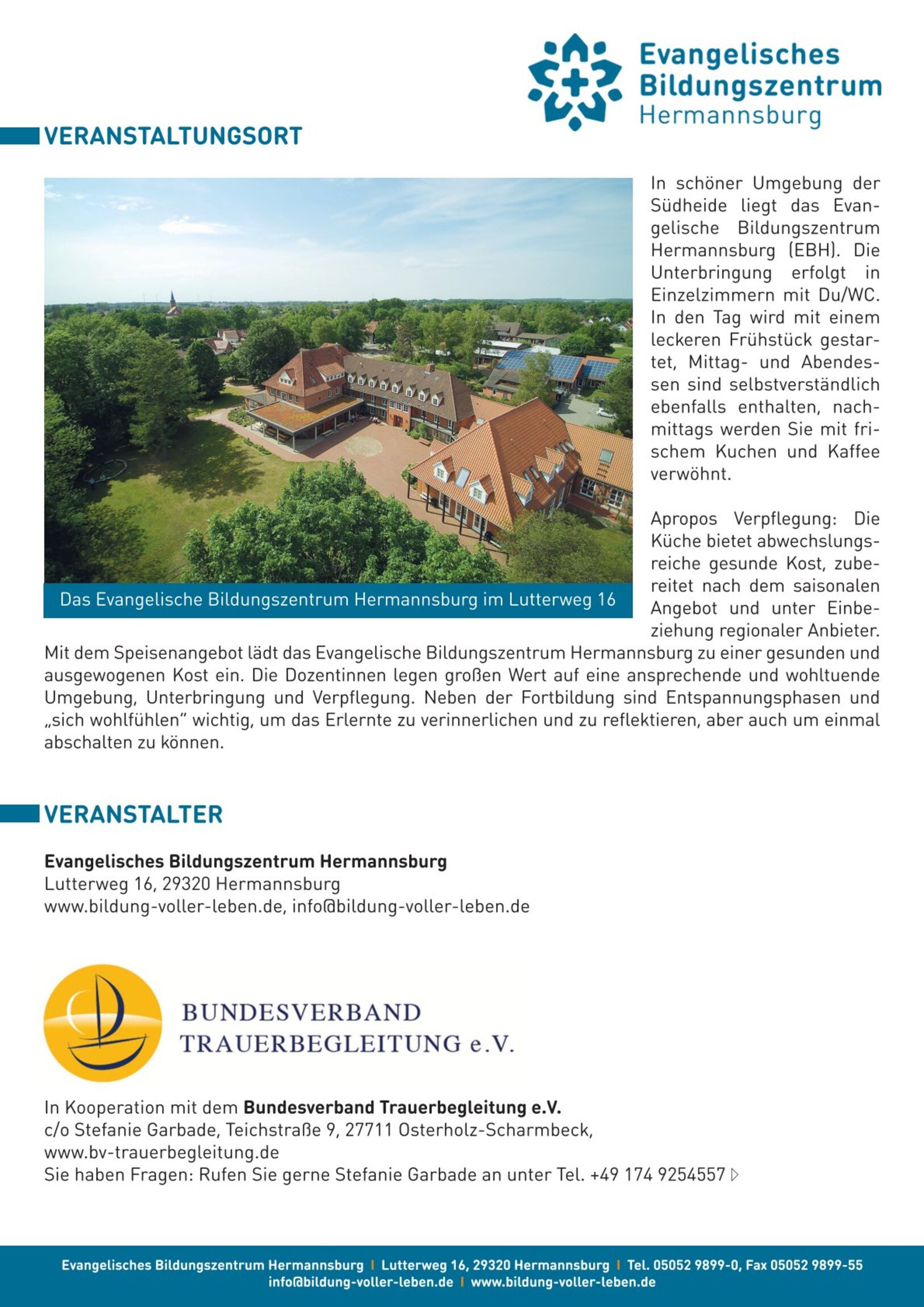 Das Ev. Bildungszentrum Hermannsburg freut sich in Zusammenarbeit mit dem Bundesverband für Trauerbegleitung e. V., die große Weiterbildung zur/zum Trauerbegleiter*in anzubieten.