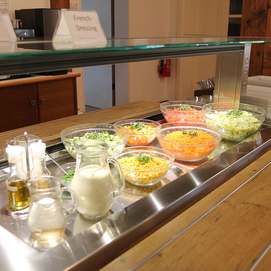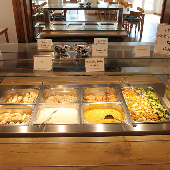 Beim Mittagessen können Sie wählen zwischen fleischhaltiger und vegetarischer Küche. Nach Absprache sind auch vegane Kost oder die Berücksichtigung verschiedener Unverträglichkeiten möglich (auch laktosefrei, fructose- und glutenarm können wir anbieten).